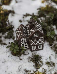 Pepparkakshus i glaserad keramik. JULBYN är serien med olika hus i keramik där det finns oändliga kombinationsmöjligheter. Arrangera våra keramikhus tillsammans och skapa ett centralt blickfång i rummet. Lys upp dem genom att placera en ljusslinga inuti dem. Husens olikheter i form och storlek gör det tacksamt att skapa en dynamik oavsett om du väljer att kombinera tre eller nio hus.