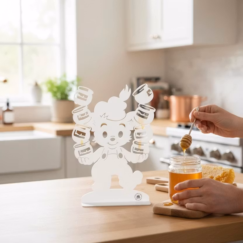 Bamse med honungsburkar – charmig siluett, bokstöd och väggdekoration
