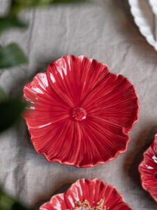 Keramikfat i form av en blomma som passar fint med jordgubbsvasen