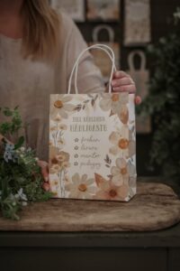 Tillverkade av 180 g fineart obestruket matt papper samt med tvinnade pappershandtag