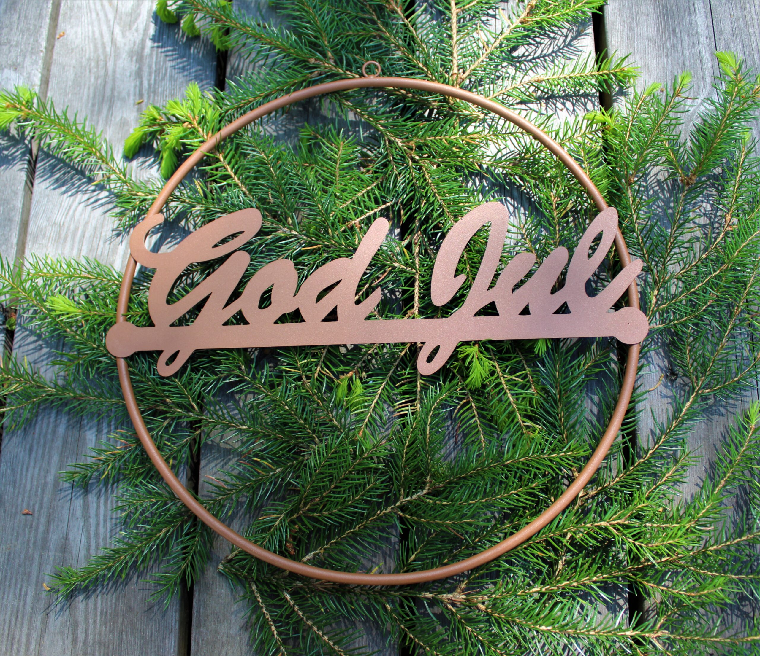 God Julkrans att dekorera eller ha som den är. Den är målad i rostliknande färg för att inte färga av sig på dörrar och väggar.