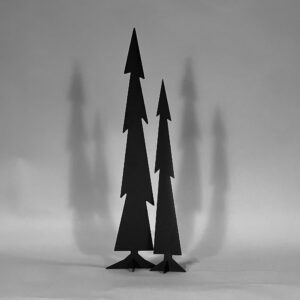 Stilrena och enkla granar i plåt som står sig alldeles fint allena eller varför inte som ett par?