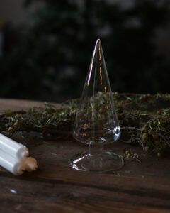 Dekoration i glas. En gran i vackert klarglas med hål i botten där man kan dekorera med en grankvist eller liknande. Superfin som höst och juldekoration, dekorera din Lidatorp eller ställ den i fönstret eller på matbordet. Extra fin blir den i grupp och gärna mixade tillsammans med någon av våra andra keramik dekorationer.