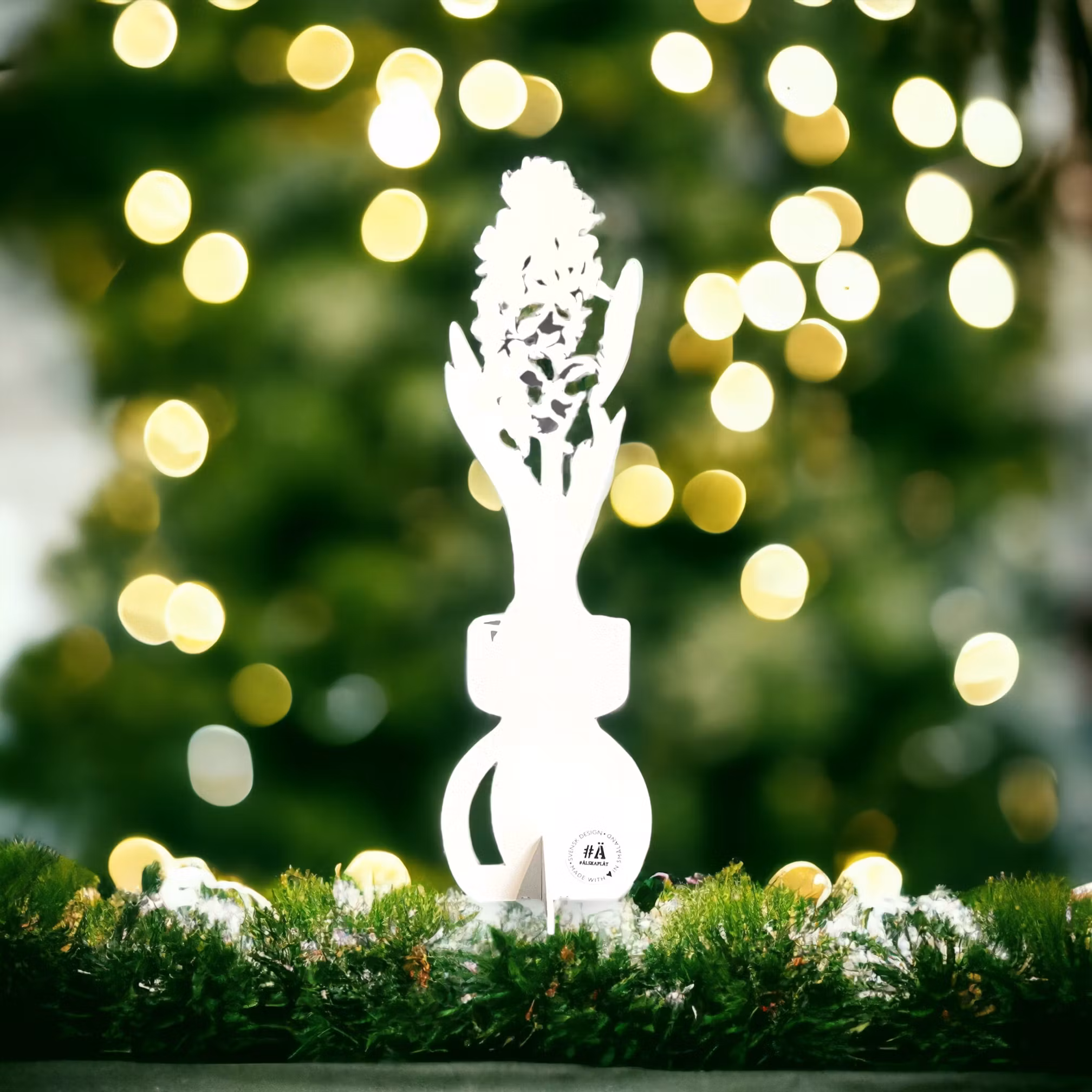 Vacker och lättplacerad hyacint i plåt som är enkel att dekorera och inreda hus och hem med! Modern variant av gå-bort blomma eller kanske en present till den som fyller jämt eller varför inte till fröken i barnens klass som julklappa?