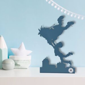 Här är Karlsson på taket – den självsäkra, charmiga och lite busiga uppfinnaren med flygande fart! Vår livliga och humoristiska siluett fångar det oförglömliga ögonblicket när Karlsson, med sitt karakteristiska skratt, håller Lillebror och de svävar tillsammans högt över takåsarna. En lekfull och äventyrlig scen som speglar Karlssons obevekliga självsäkerhet och hans egenvärde – trots att han är en smula egenkär.