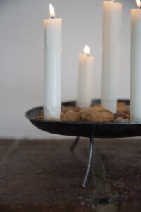Värm ”piggen” på ljusfatet så går det lättare att trycka dit ljuset/ljusstumpen