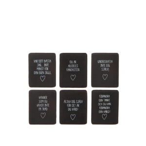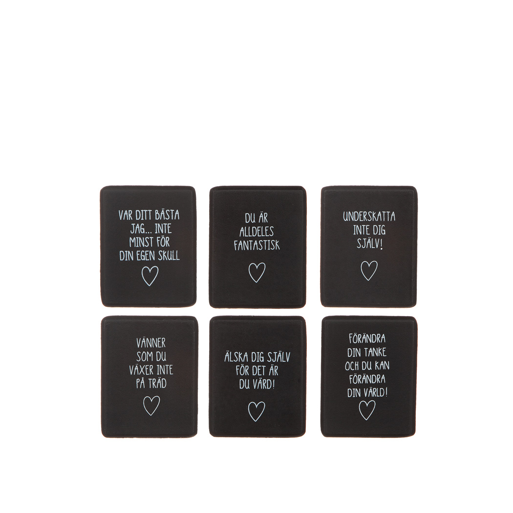 Skylt i trä med text och magnet