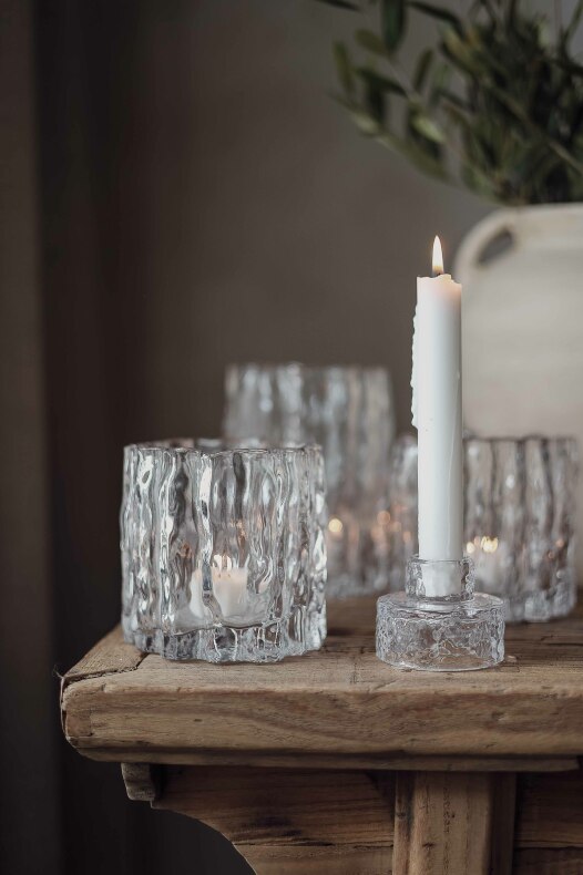 Ger ett underbart sken till följd av det grovhuggna glaset samt fungerar lika bra som en vas.