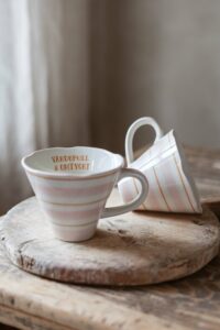 Ljuvlig mugg med handmålat mönster i glada härliga färger