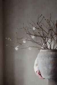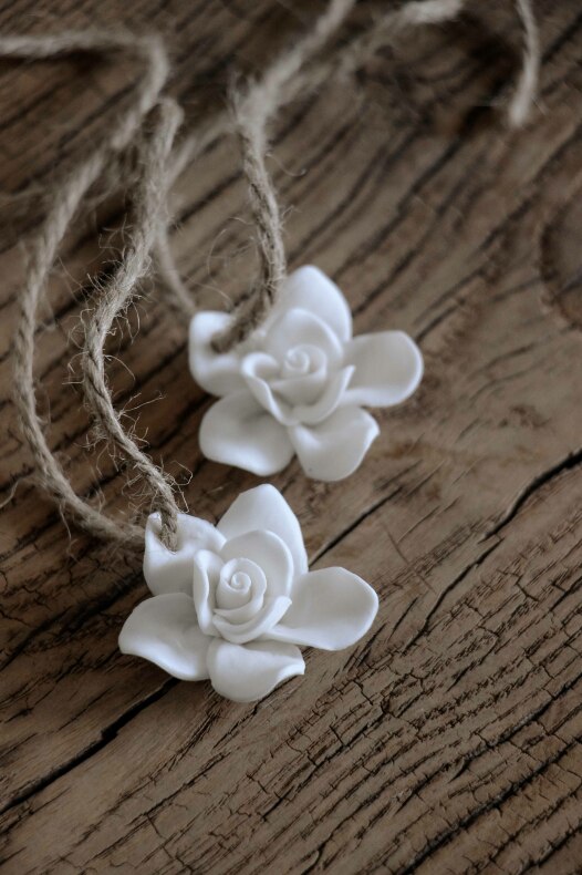 Vacker handgjord Blomma i keramik med juteband att knyta runt servetter, att hänga eller ha som dekor.