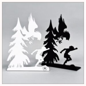 Här är Ronja Rövardotter – modig, stark och fri som ingen annan! Vår dramatiska och detaljrika siluett fångar ett av de mest spännande ögonblicken i hennes äventyr, när hon jagas av vildvittror i skogarna. Med sitt orubbliga mod och vilja att stå upp för sig själv och sina vänner, är Ronja en av de mest ikoniska och älskade karaktärerna i Astrid Lindgrens värld.