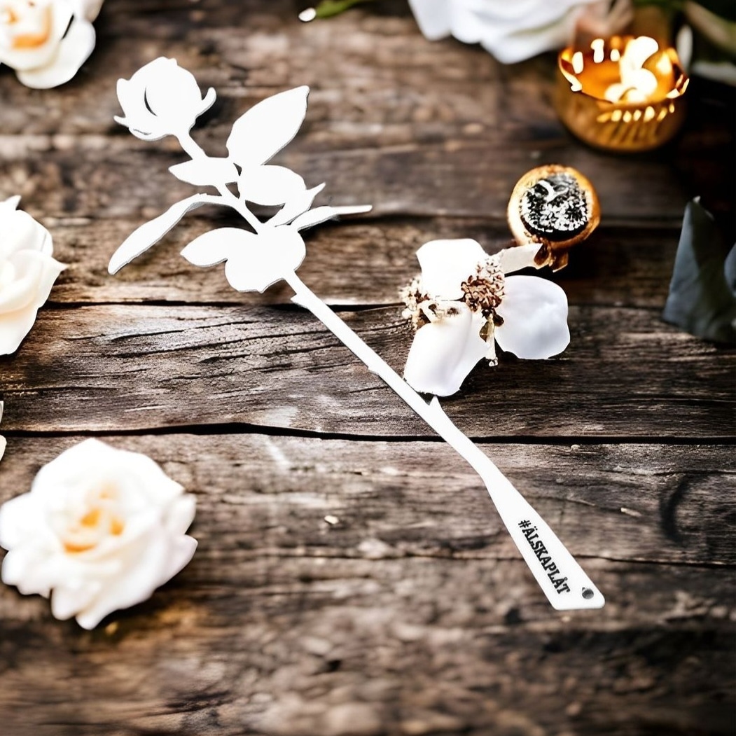 Denna fina enstycksros passar perfekt som present att räcka över på studenten (finns dessutom en ögla att trä igenom snöre för att hänga om halsen)!