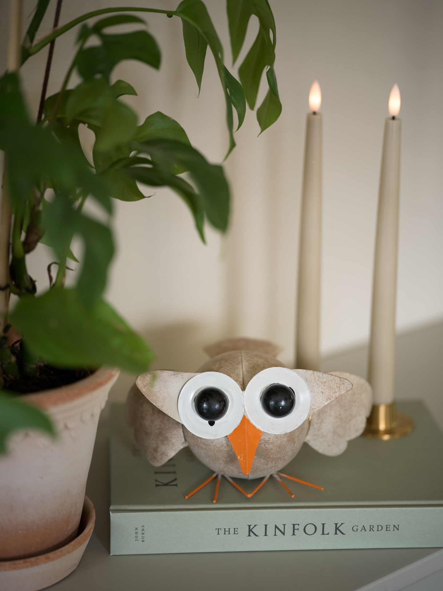 Sandfärgad uggla i hamrad plåt från Different design
