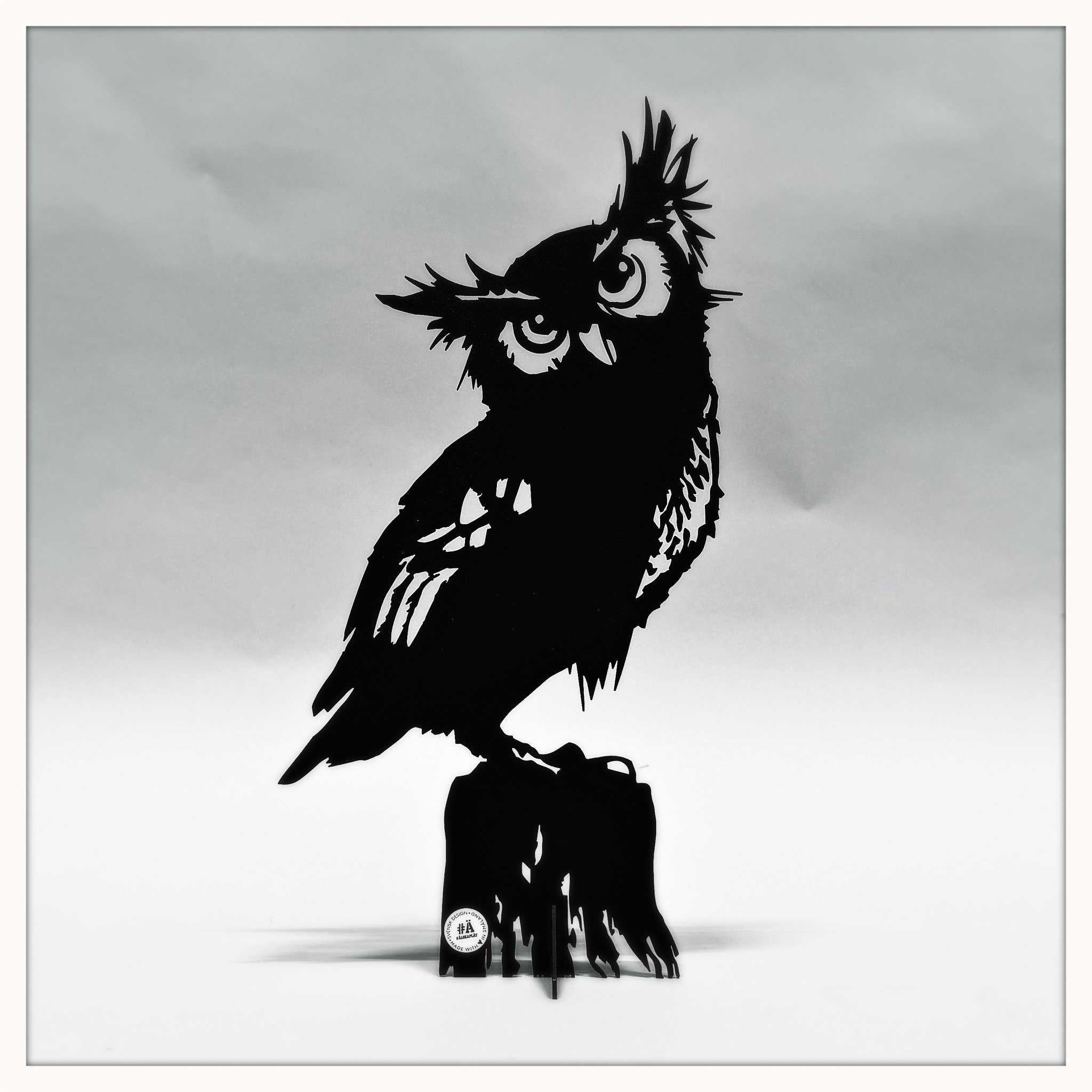 Ugglan hos oss är dock skarpsynt dygnets alla timmar och står sig fint i varje hus och hem på sin lilla stubbe. Lättplacerad på en skänk eller i fönster så vakar den vackert med stor trygghet och vaksamhet.