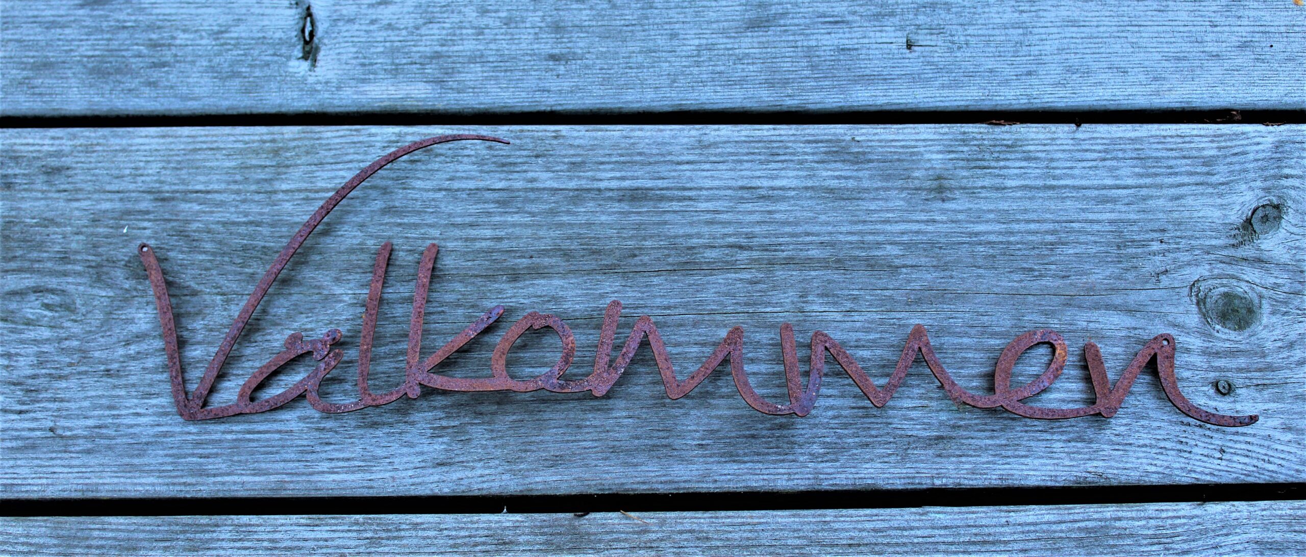 Trevlig rostig skylt. Den kan böjas på olika håll så den följer en krans i halvrund form tex.